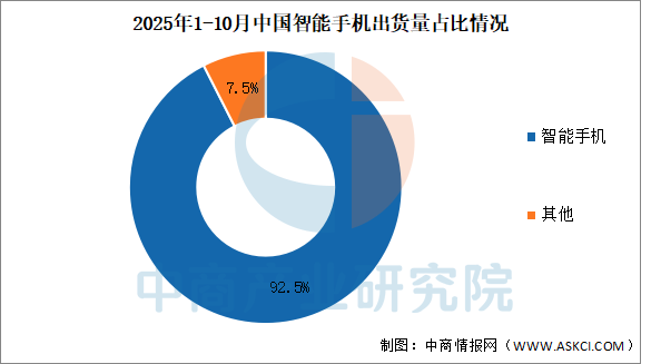 目前手機市場基本由智能手機主導,2025年1-10月,智能手機出貨量2.33億部,同比下降0.3%,占同期手機出貨量的92.5%。